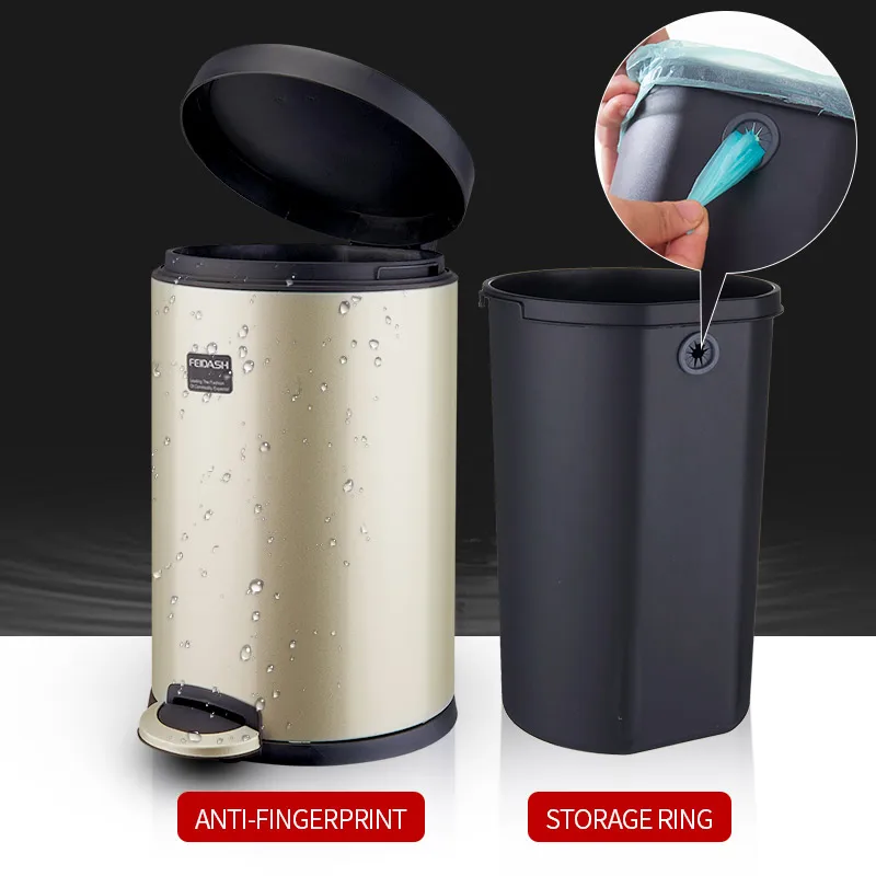 BEST QUALITY 5L Stainless Steel Trash Can Pedal Bin Mute Waste Bin Bathroom Kitchen Double Barrel Dustbin