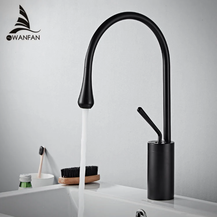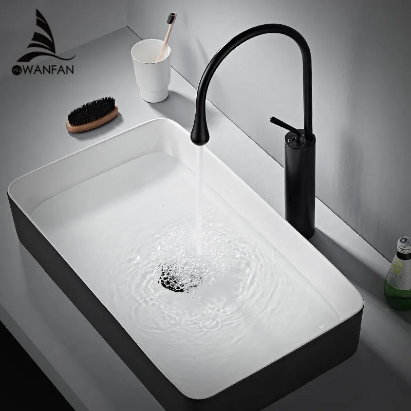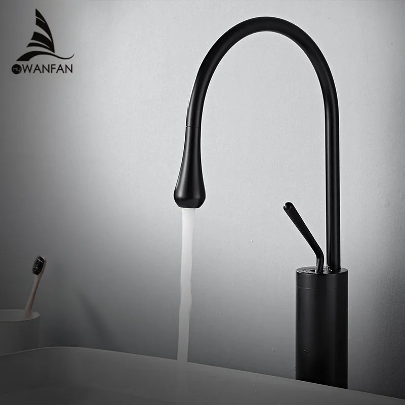 Basin Faucets Modern Black Bathroom Faucet Waterfall faucets Single Hole Cold and Hot Water Tap Bas